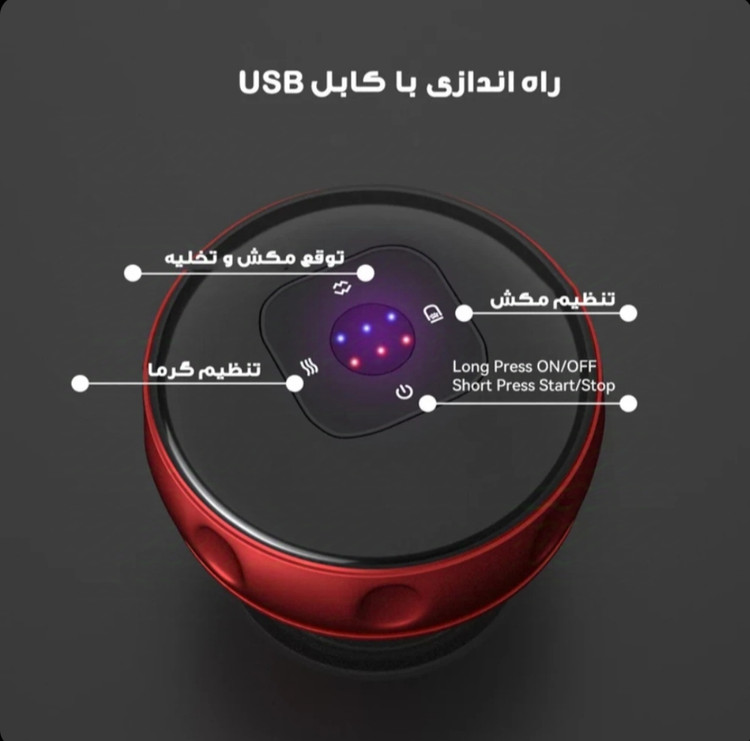 ابتدا کابل TYPE-C را به دستگاه مکنده متصل کنید ، سپس با فشار دادن کلید روشن خاموش دستگاه را روشن کنید سپس با فشردن دکمه ی تنظیم مکش میزان مکندگی را تعیین کنید . جهت دریافت بهترین نتیجه ، ناحیه ی بادکش بر روی پوست را چرب نمائید .