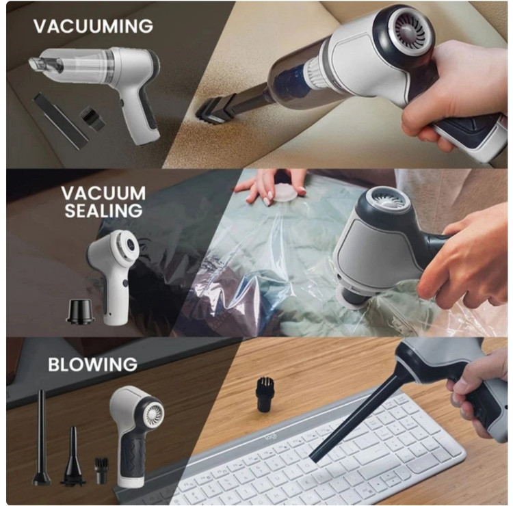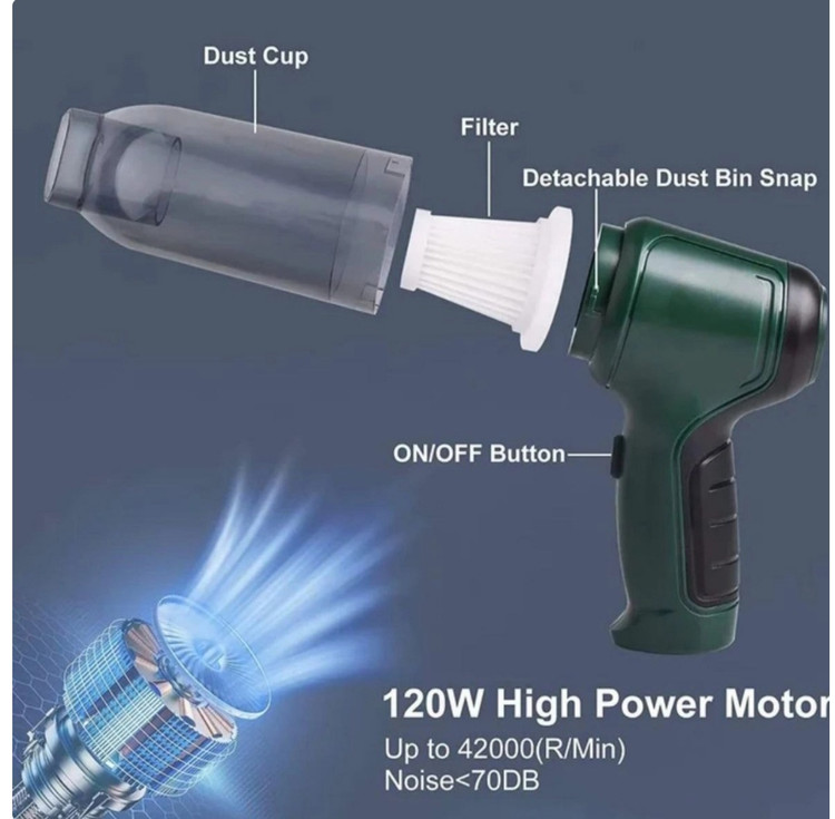 . این دستگاه همانطور که از نامش پیداست، قابلیت دمندگی را نیز بر عهده دارد.جالب است بدانید که از این دستگاه بخاطر داشتن قابلیت دمندگی میتوانید به عنوان یک وسیله برای باد کردن بادکنک یا تشک بادی یا حتی باد بزن زغال استفاده کنید .جارو شارژی مدل JB-107 دارای باطری داخلی است که با توان 120 وات امکان استفاده را بر روی انواع خودرو و وسیله های نقلیه و تمیز کردن نقاط غیر قابل دسترس گوشه ی مبل ها و … را به ما می دهد و همچنین در صورت کثیف شدن فیلتر، به راحتی قابل شستشو است و نیازی به تعوض ندارد.جنس بدنه جارو از پلاستیک محکم ABS با طراحی زیبا و شیک است.بسته بندی این گجت ماشین شامل 4 عدد سری مختلف است که امکان جارو کردن تمام نقاط را به ما می دهد.