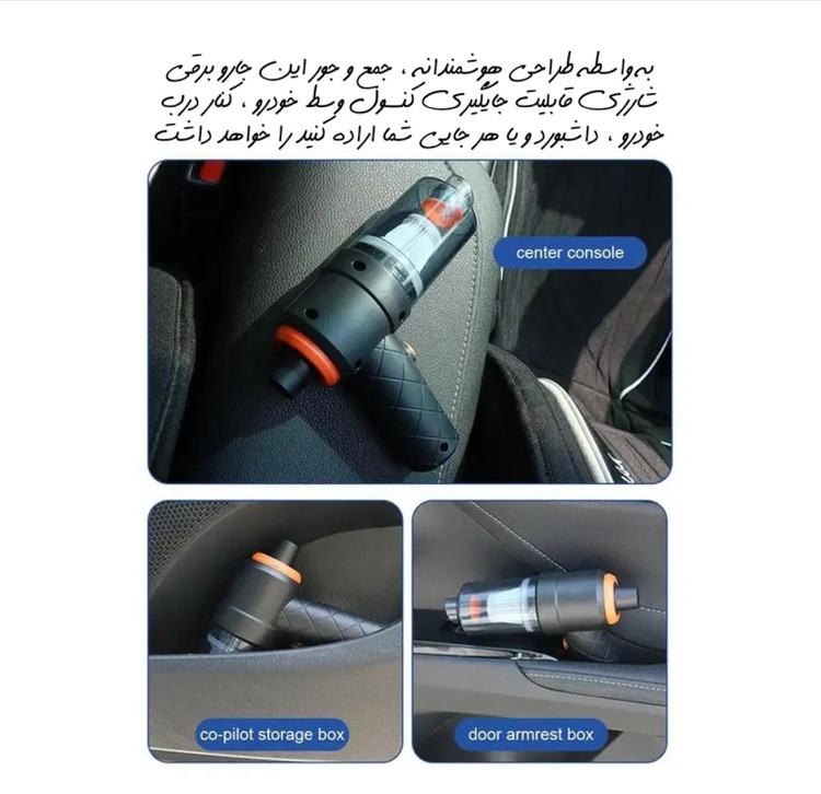 اگر به دنبال یک جارو شارژی برای خودرو و ماشین تان هستید این پیشنهاد عالی را به شما می دهیم، محصولی بی نظیر و با قدرت فوق العاده تولید کشور چین که دارای مخزن با گنجایش عالی و مکش بالا برای تمیز کردن سریع داخل ماشین کاربرد دارد.این جارو دو قابلیت مکندگی و دمندگی دارد این جارو شارژی ماشین قابل حمل دارای دو سری می باشد که به قسمت مکنده متصل می شود که یکی برای قسمت هایی مانند بین صندلی که دسترسی به آن سخت است طراحی شده و سری دیگر دارای فرچه برای گردگیری از موکت زیر پا و بیرون کشیدن خاک و مو طراحی شده است که بسیار کاربردی می باشد. برای شارژ کردن این دستگاه می توانید سری USB را به شارژر موبایل یا شارژر فندکی ماشین وصل کنید و سر دیگر آن را به دستگاه متصل کنید تا شارژ کامل شود و از آن تا ساعت ها استفاده کنید. جاروبرقی چند منظوره – این جاروبرقی قابل حمل نه تنها عملکرد جاروبرقی را دارد، بلکه عملکرد گرد و غبار و دمنده هوا را نیز دارد. هنگام استفاده از عملکرد خلاء، لوازم جانبی مختلفی برای پاسخگویی به نیازهای سناریوهای مختلف وجود دارد. با قرار دادن نازل هوا در پشت جاروبرقی، می توان آن را به بادگیر و دمنده برای تمام نظافت و نیازهای روزانه شما تبدیل کرد. جاروبرقی کارآمد – طراحی بی سیم و قدرت مکش 6000 پاسکال به شما این امکان را می دهد که گرد و غبار، موهای حیوانات خانگی، شن و ماسه، باقیمانده غذا، مقدار کمی مایع و چیزهای مختلف پنهان شده در کوسن ها یا مبل ها را در هر زمان و هر مکان به راحتی تمیز کنید. باتری لیتیومی داخلی 1200 میلی آمپر می تواند نیاز شما را پاسخگو باشد. لوازم جانبی کاربردی فوق العاده – علاوه بر لوازم جانبی مختلف نازل هوا، این جاروبرقی اتومبیل علاوه بر این شامل فیلتر ضد گرد و غبار و یک میله طولی برای دسترسی به قسمت های تنگ بین صندلی ها می باشد. بی سیم و قابل حمل – این جارو شارژی دستی کمتر از 300 گرم وزن دارد. طراحی بی سیم به شما امکان می دهد بدون محدودیت از آن استفاده کنید. زندگی را راحت تر کنید جاروبرقی سایز کوچک برای انواع سناریوها مانند خانه، محل کار و ماشین مناسب است. هنگام استفاده، نویز کمتر از 70 دسی بل است که باعث ایجاد مشکل در صدا نمی شود.