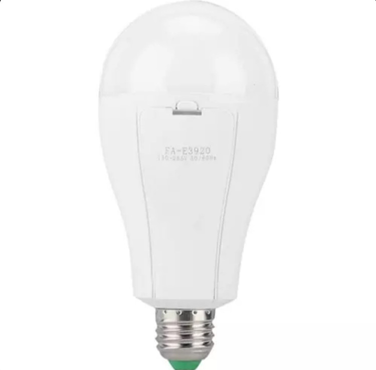 لامپ اضطراری شارژی سرپیچی 20 وات مدل FA-E3920 بهترین گزینه برای قطعی برق هست و بهترین کیفیت را نسبت به لامپ های شارژی همرده های خود دارد زیرا باتری آن باتری لیتیومی اصلی بوده و عمر بیشتری داراست.لامپ اضطراری شارژی سرپیچی 20 وات با نوردهی بالا قابلیت نصب بر روی سرپیچ های استاندارد و شارژ از طریق برق 220 ولت شهری. در هنگام استفاده از چراغ، همزمان شارژ باتری های آن انجام می شود و در زمان قطعی برق می توانید از روشنایی آن استفاده کنید. نکته: کارکرد لامپ صرفا در زمان باز بودن کلید دیواری بوده و خود لامپ دارای کلید روشن/خاموش نمی باشد. این لامپ با هر بار شارژ کامل حدود 3 ساعت قابل استفاده بوده و به صورت پرتابل نیز قابل استفاده است. نکته: در فضای باز، لامپ باید با سرپیچ محصوص که همراه لامپ ارسال میشود کار کند. ولتاژ کاری: AC 90V-265V فرکانس کاری: 50/60 هرتز دمای کاری: -20~80℃ دمای ذخیره سازی: -20~85℃ رطوبت کاری: 20-80% قدرت: 20 وات برق اضطراری: 3W زمان تخلیه اضطراری: 3-4 ساعت زمان شارژ اضطراری: 4 ساعت زمان عمر: ~ 50 هزار ساعت زاویه: 180 دمای رنگ: 6800-7300K شار نورانی: 1M~1400LX عامل پوئر: ≤0.7 (حساسیت ESD): 2000 ولت HBM بازده: > 85% شاخص رندر رنگ: >