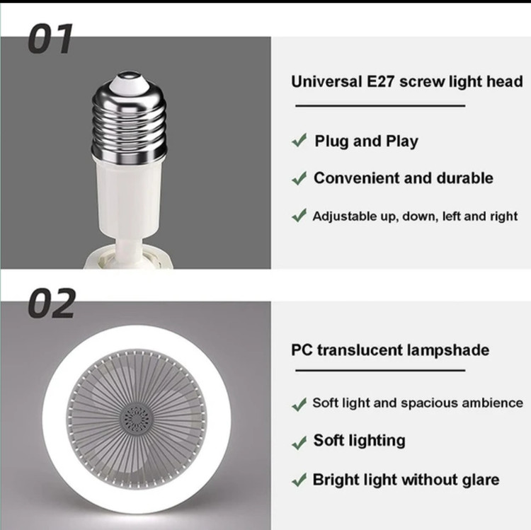از ویژگی این چراغ پنکه سقفی محصور دارای موتور بی صدا مسی، باد شدید، سرعت دویدن سریع، صدای کم است تا یک محیط خواب آرام و راحت را برای شما ایجاد کند. این چراغ فن دارای طراحی نصب ساده و قابل درک است، هیچ مهارت حرفه ای لازم نیست، برای نصب سریع کافی است پنکه سقفی LED را در هر سوکت لامپ E27/E26 پیچ کنید، می توانید به راحتی نصب را کامل کنید. ، و بلافاصله از سورپرایز مضاعف خنک کننده و نورپردازی لذت ببرید.
