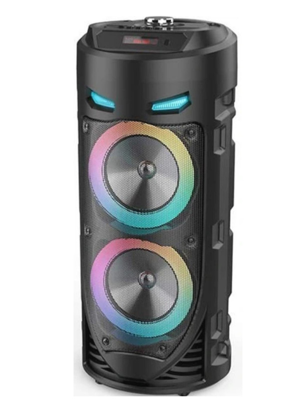 ویژگی ها: مناسب جهت فضاهای 60 الی 80 متری رقص نور جذاب دارای حالت های متنوع با کلید کنترل چراغ ها ال ای دی شارژ قابلیت نگهداری موبایل دارد دارای میکروفون سیمی و امکان خواندن همراه موزیک نگهداری شارژ تا حداکثر 2 ساعت درصورتی که ولوم روی 75% باشد